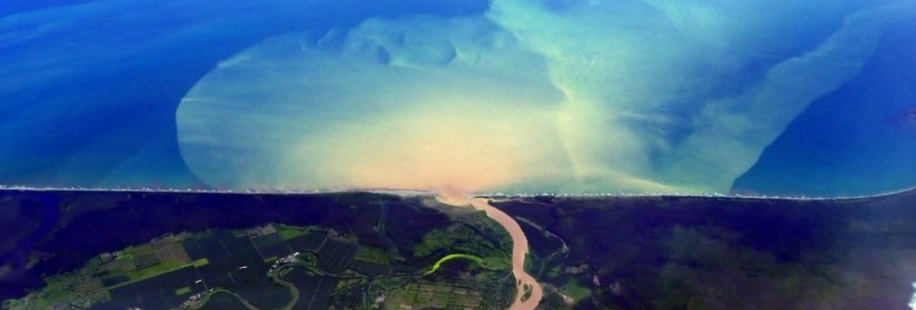 Runoff – After a rainstorm, a river on the Meso-American coast discharges sediment and nutrient-laden water (fertilizer and other possible contaminents) to the Caribbean sea. [Photo: Malik Naumann, Marine Photobank] Almost 80% of marine pollution comes from land-based activities worldwide: industry, agriculture, or domestic.