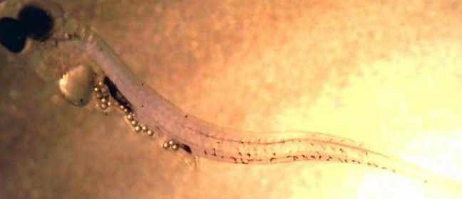Featured Image: A larval perch that has ingested microplastic particles, Credit: Oona Lonnstedt