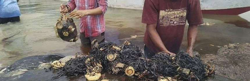 Necropsies were carried out on the turtles after they died either by stranding or bycatch (accidental catching in fishing).